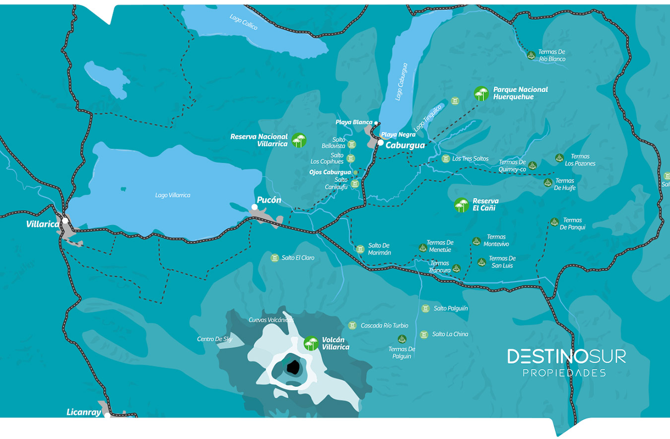 La zona lacustre de la región de La Araucanía es una de las más biodiversas del sur y la comuna de Pucón (inserta en la zona) ha sido nombrada la capital del turismo aventura en Chile en los últimos años. Es que paisaje y aventura son solo una parte de lo que estas comunas ofrecen, con un centro turístico rodeado de naturaleza indómita, de volcanes, ríos y playas, que invitan a vivir y disfrutar del entorno sin límites, pudiendo decidir entre días de desconexión absoluta o tardes de las más entretenidas aventuras. El volcán Villarrica, su más imponente residente, viste el paisaje con una de las postales de ski en invierno más icónicas del país. Así mismo, la red geotermal que recorre la zona lacustre da vida a una veintena de centros termales en medio del bosque templado lluvioso que cubre sus montañas.
